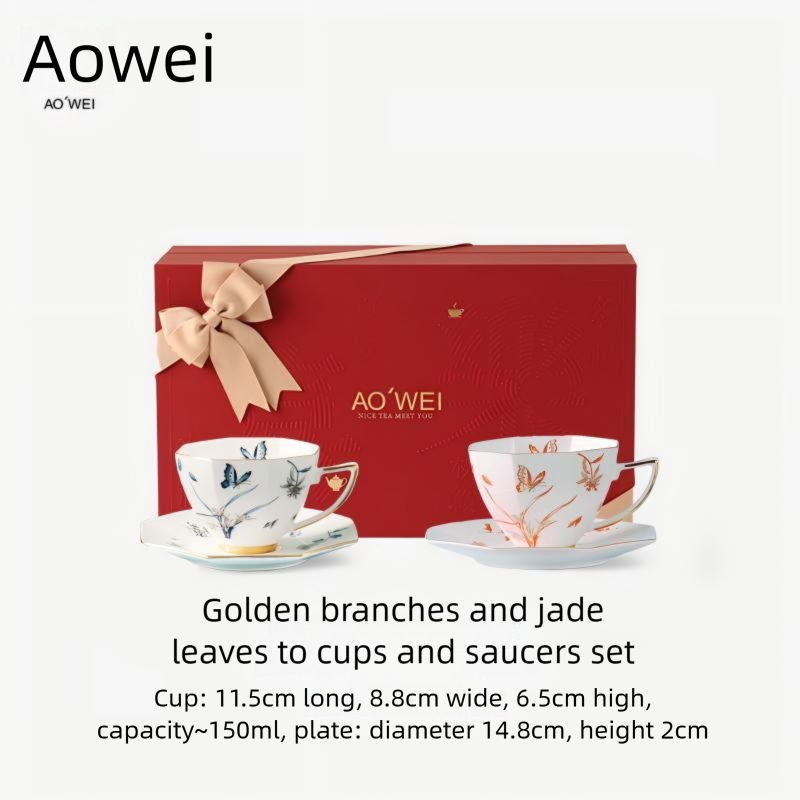 Jingdezhen Ceramic Coffee Cup & Saucer – Custom Gift Box for Weddings & Festivals