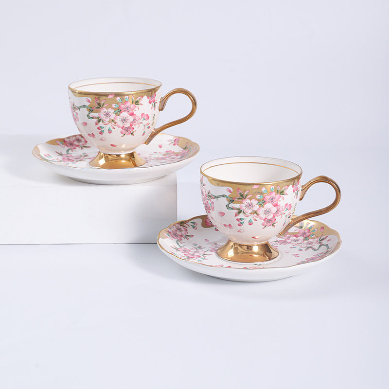 Jingdezhen Ceramic Coffee Cup & Saucer – Custom Retro Floral Gift Set