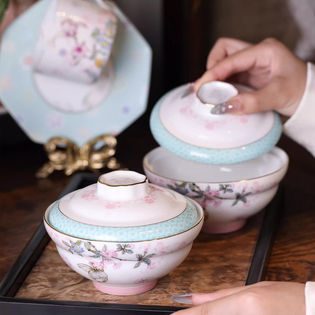 Aowei Jingdezhen White Porcelain Tea Set – Covered Dim Sum Bowls & Small Gift Set
