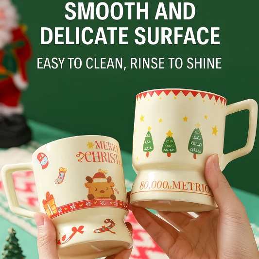 These festive ceramic mugs turn every drink into a cozy holiday moment . Cute reindeer , Christmas trees , and cheerful colors—just the right mix of warmth and whimsy for your winter mornings !