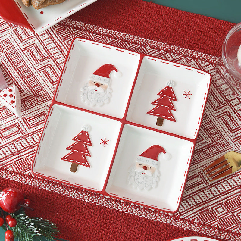 Christmas Practical Multi-Person Serving Plate Series Ceramic Santa Claus Plates, New Amazon Cross-Border Products