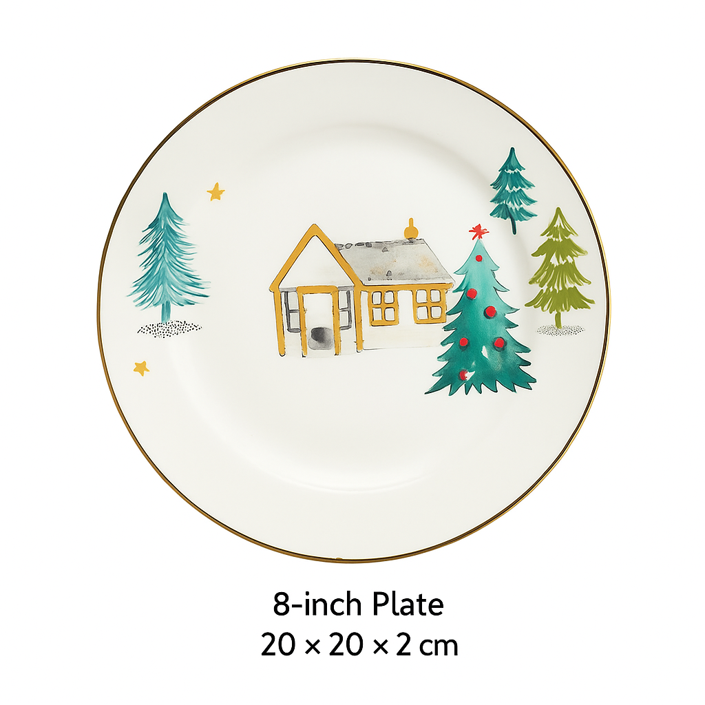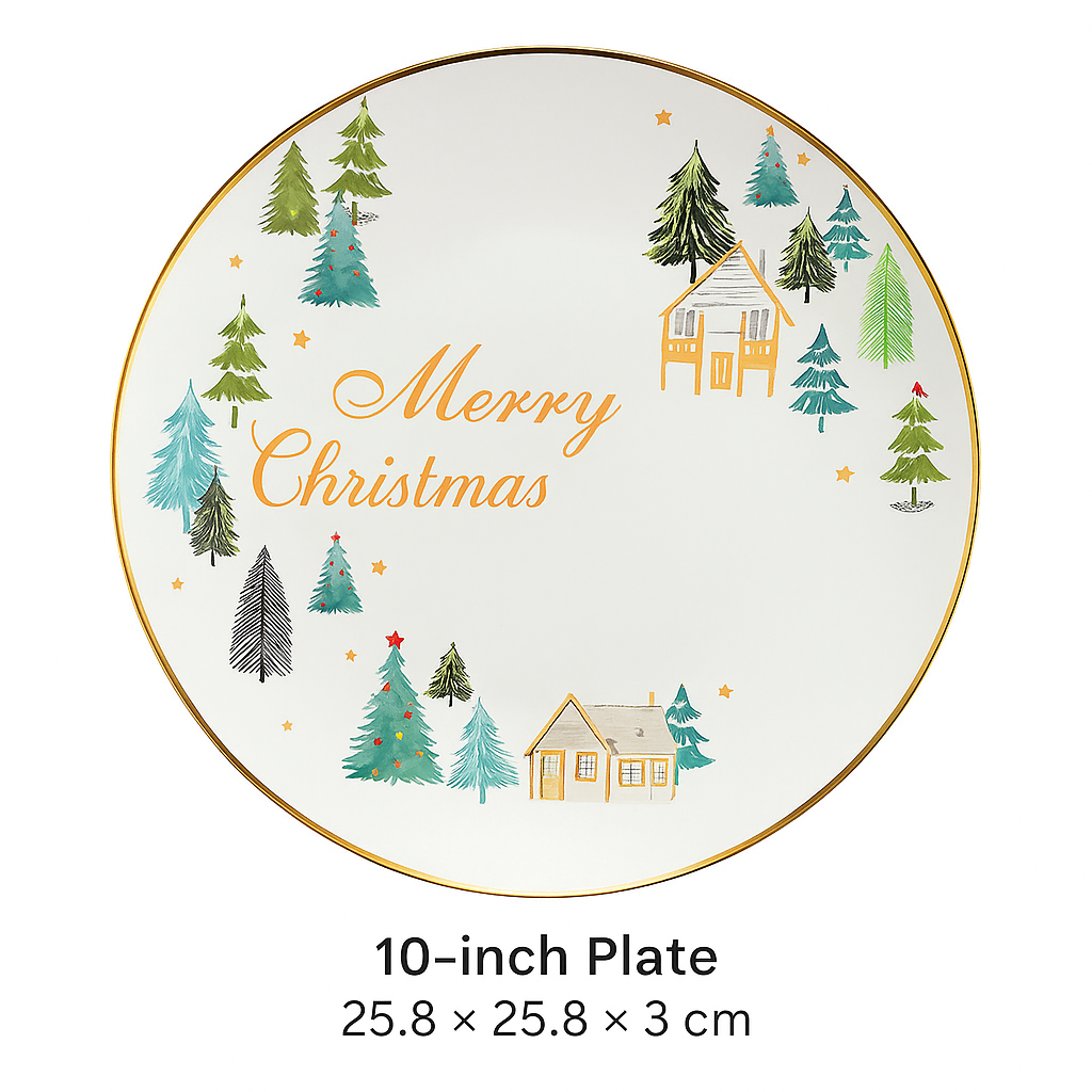 Christmas tree tableware set, ceramic rice bowl, cute dessert plate