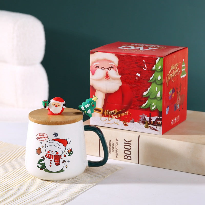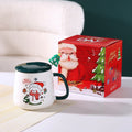 Cross-border cute Christmas gift mug with lid and spoon high-value Santa Claus elk ceramic cup souvenir