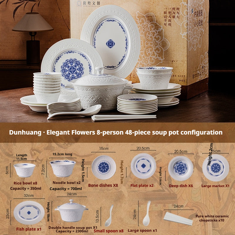 Dunhuang-Flower Elegant 8-Person 48-Piece Set (Soup Pot) W696-4