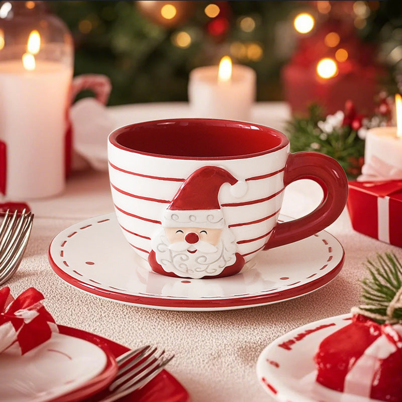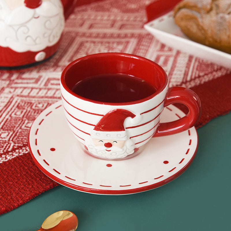 European-style Santa Claus ceramic coffee cup and saucer set, creative gift teapot, embossed afternoon tea cup and saucer tea set