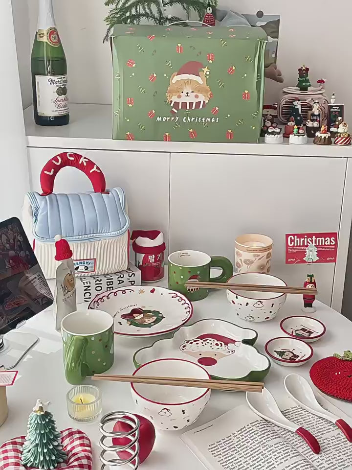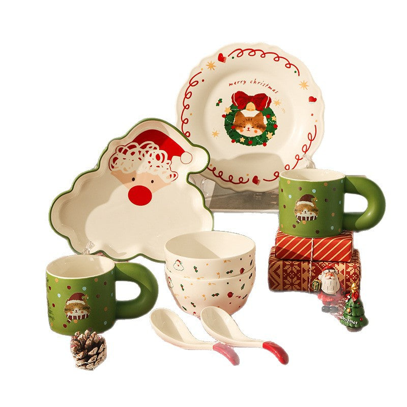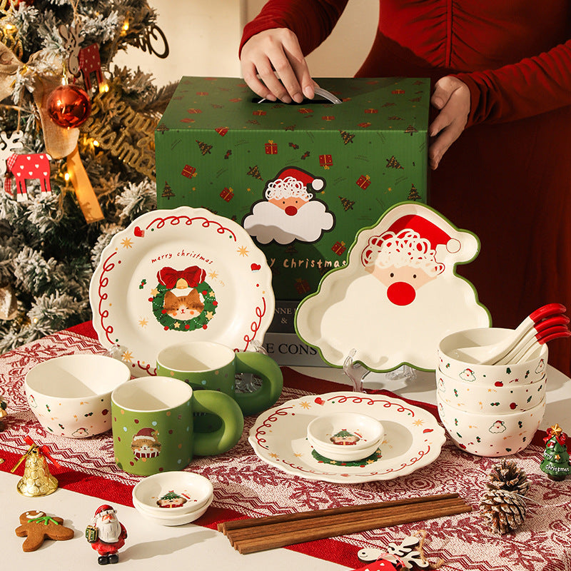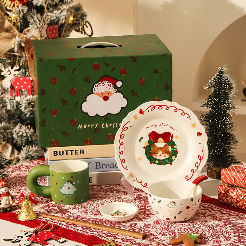 High-quality Christmas ceramic tableware gift set, including mugs, bowls, plates, and event gifts.
