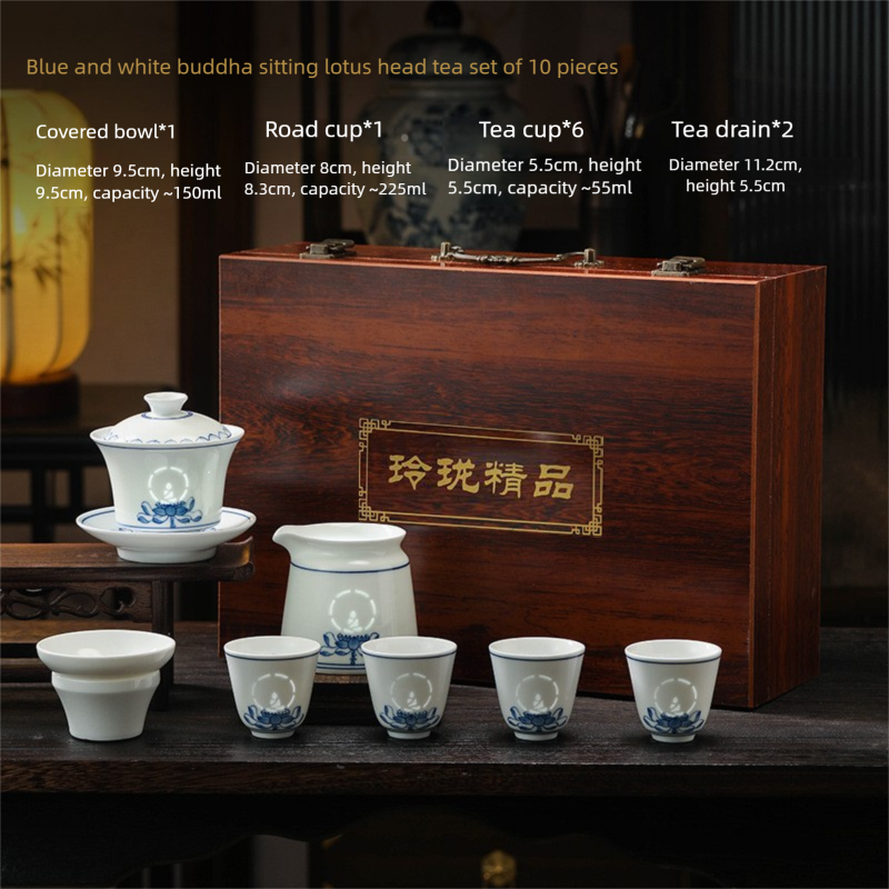 Jingdezhen Blue & White Tea Set – Custom Gaiwan & Teacup Gift Set for Business or Housewarming