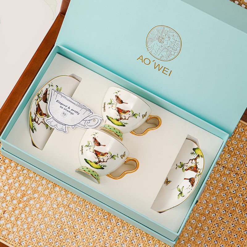 Bird Poetry Coffee Cup and Saucer Set of 4 (Sky Blue Gift Box)