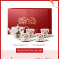 A173-39 Hundred Birds Adoring the Phoenix One Teapot Four Cups Saucers Red Dragon Year Double Open Gift Box Set