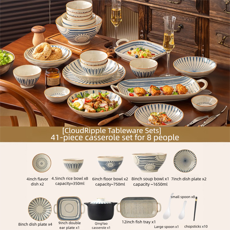 【Bafanglaicai Clay Pot Style】Yunlan 8-Person Dining 41-Piece Set