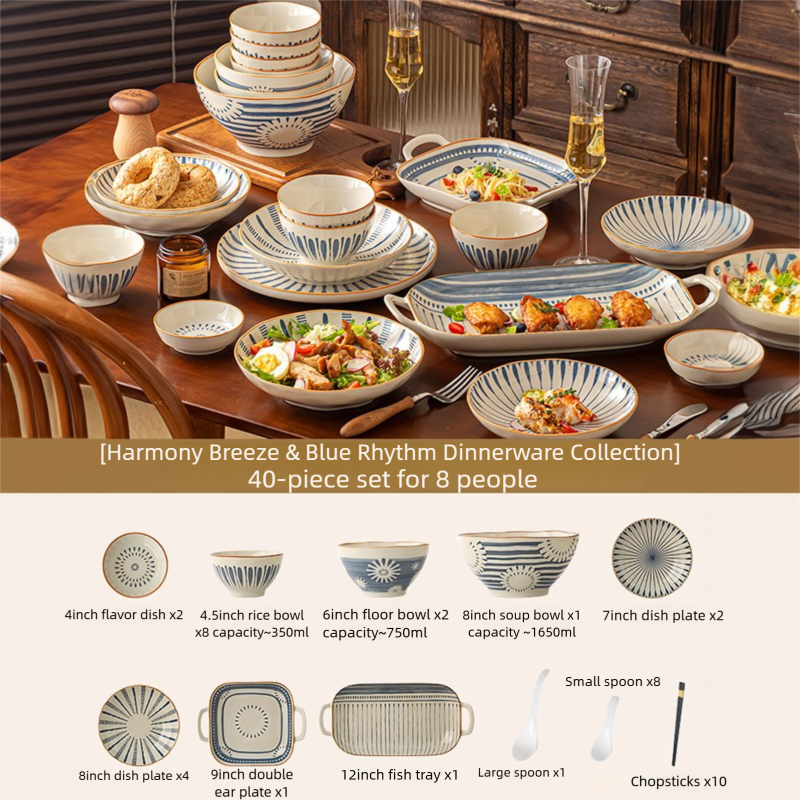 【Bafang Wealth Entering the House Selection】Yunlan 8-Person Dining 40-Piece Set (High-Temperature Underglaze Color)