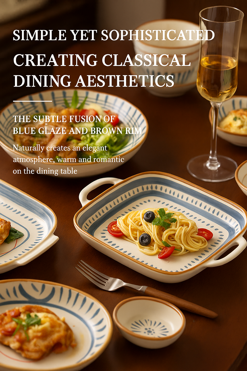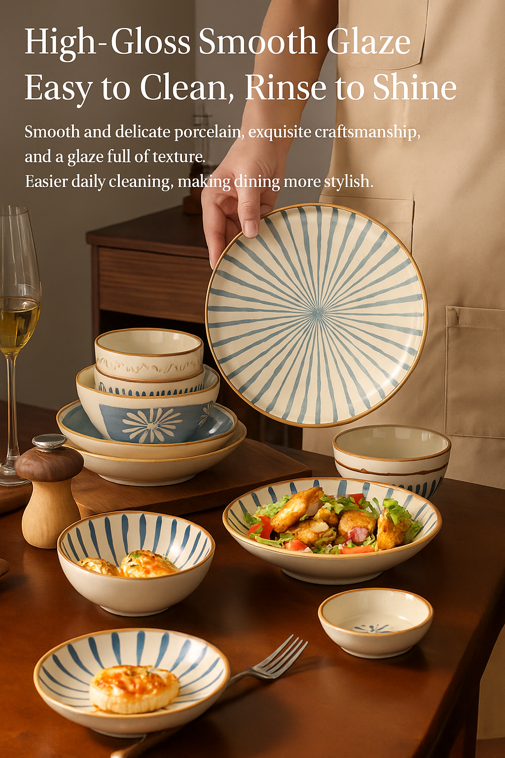 Minimalist Underglaze Ceramic Tableware Set – Elegant Rice Bowls & Deep Soup Plates