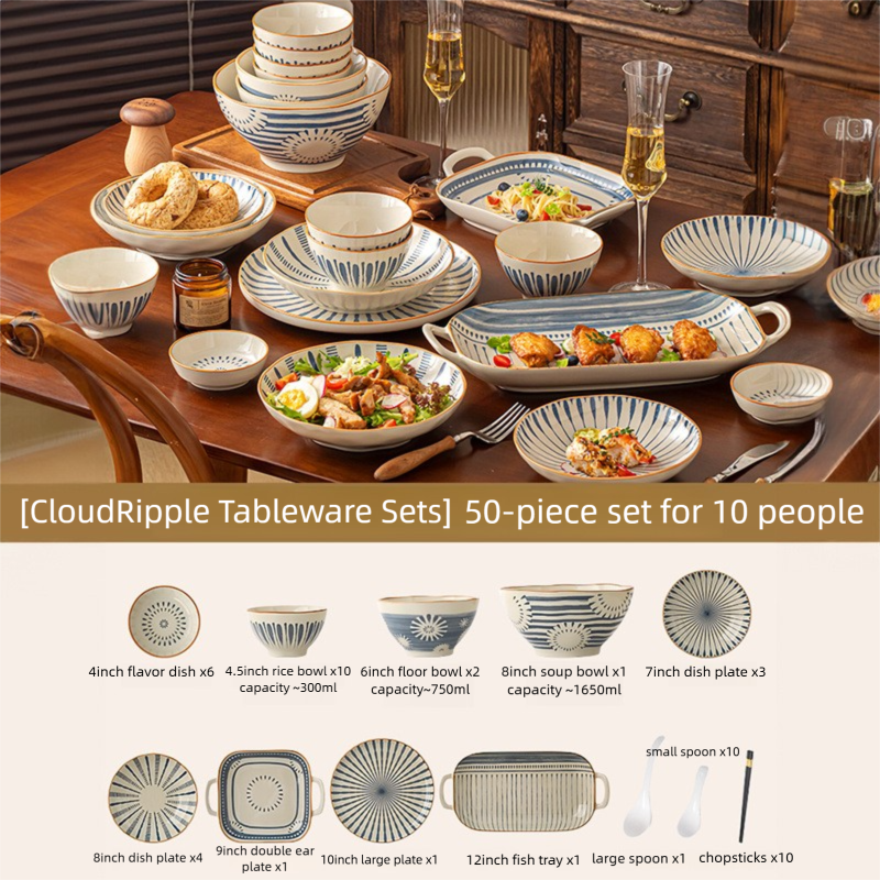 【Perfect Gift for Loved Ones】Yunlan 10-Person Dining Set 50 Pieces (High-Temperature Underglaze Color)