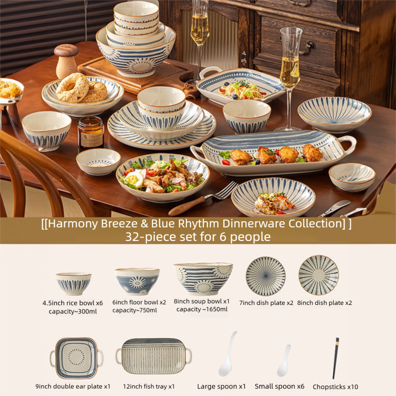 【Liuliu Dashun Daily Selection】Yunlan 6-Person Dining 32-Piece Set (High Temperature Underglaze Color)