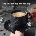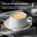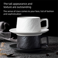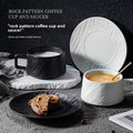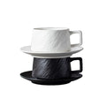 Nordic Black & White Ceramic Cup with Saucer – Retro Stone Pattern Coffee Cup