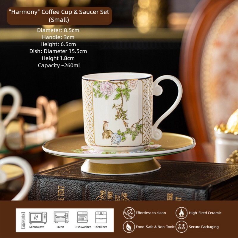 Qinsehe Ming Bone China Coffee Cup & Saucer Set – Luxury Tea Gift Box